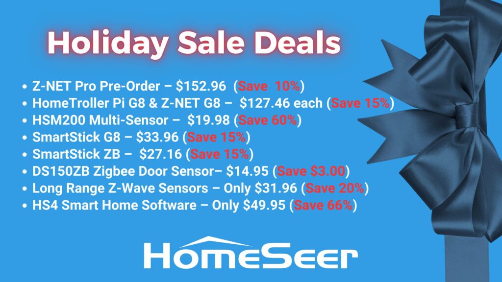 We at HomeSeer are excited to announce our 2025 Holiday Sale which will run between Dec 1st until December 31st. So if you did not get a chance to take advantage of our Black November offers you can still get high-quality HomeSeer products at great prices