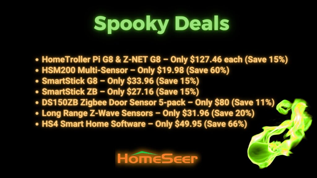 HomeSeer is happy to announce its 2025 Halloween sale which will run between October 10th until October 31st. To celebrate the spooky season we are happy to announce the release of our latest product the DS150ZB alongside offering discounts on a large array of our devices and software.