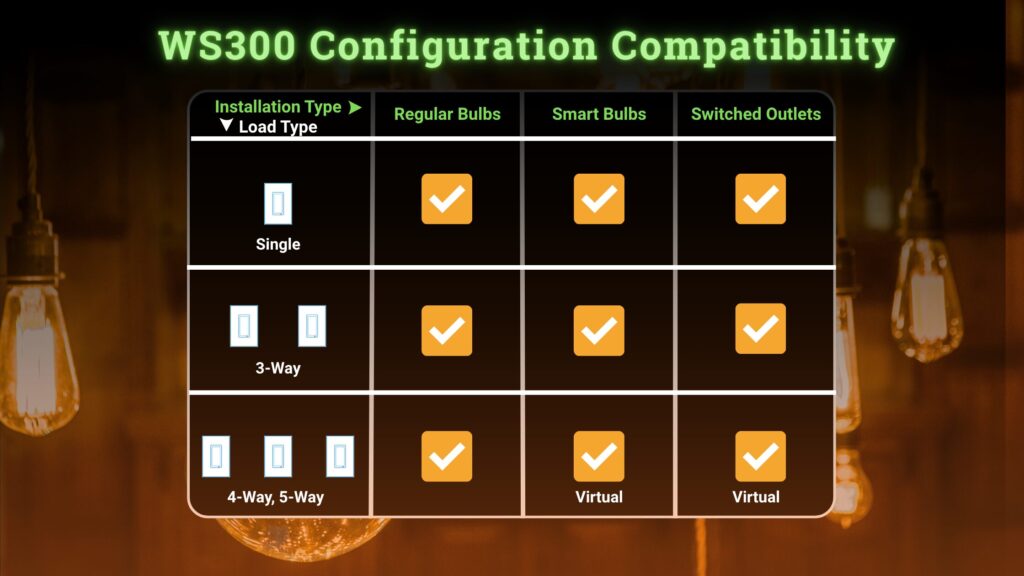 - Smart Bulb Feature: decouples load control and allows the WS300 to be used exclusively as a scene controller.