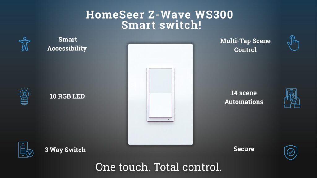 The WS300 is the latest 800 series Z-Wave smart-switch from HomeSeer. It is capable of single and 3-way configurations, it also offers remote and local control. It is Z-Wave enabled, supports S2 security and Z-Wave Long Range, hosts customizable LED’s and has the ability to activate multi-tap based scene control.