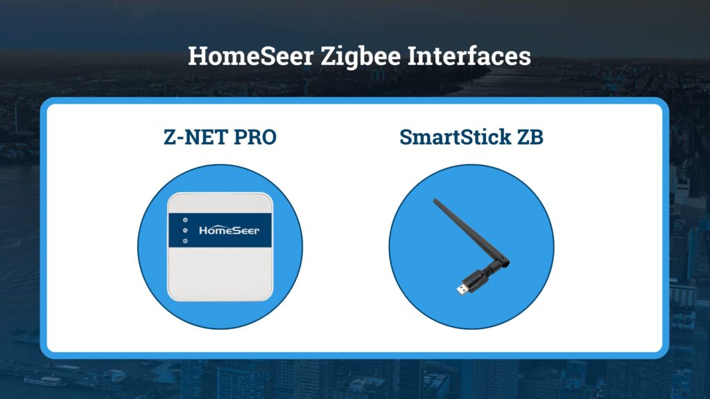 Currently HomeSeer offers 2 Zigbee options for integration. Our SmartStick ZB boasts the exceptional range and a cost effective means to add a Zigbee interface into your already existing system. Our Z-NET PRO which is currently on Pre-Sale is a dual network Z-Wave and Zigbee interface that allows you to add Zigbee on your already existing network or extend the range of your already existing Z-Wave and Zigbee systems. Along with the HomeSeer Zigbee Plugin for HS4 you can easily start your journey to adding Zigbee to your system today.